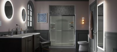 Kohler verdera lighted wall mirrors deliver optimally bright, even, and shadowless bathroom verdera lighted mirrors coordinate with surrounds and side kits in the kohler tailored vanity.